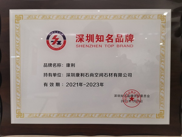 康利相繼獲得"廣東省名牌產(chǎn)品"、"廣東省著名商標(biāo)"、"福建名牌產(chǎn)品"、"石材產(chǎn)品質(zhì)量信得過(guò)企業(yè)"、"中國(guó)石材十強(qiáng)企業(yè)"等,并繼續(xù)致力于成為中國(guó)石材行業(yè)第一品牌。