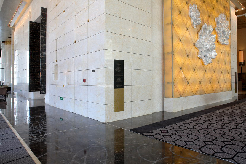 項目概述:北京萬達索菲特大酒店傲居備受矚目的商業(yè)領地CBD核心區(qū),以白金五星級標準打造。酒店延續(xù)索菲特酒店的法式風情,結合極富北京地域特色的裝飾設計,被第四屆中國酒店星光獎評為“中國最佳頂級奢華酒店”。酒店內部裝飾奢華、高雅,多種高端石材的精妙運用,大大提升酒店的品位和檔次。其中,天然石材金蜘蛛和黑金花的完美搭配,堪稱室內設計經典之作!
